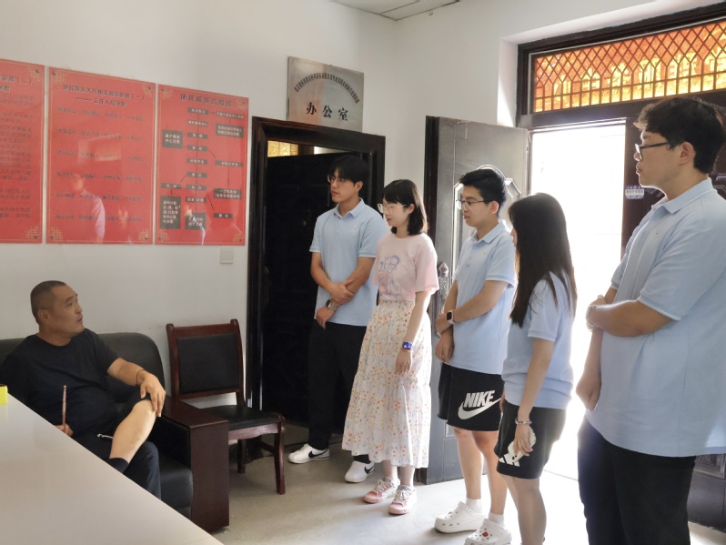 上午,实践队一行抵达梁东村村委会,开展调研座谈。村党支部书记助理、长安大学2024届选调生孙朱旭从村庄基本情况、党建机制、党员结构等方面进行了介绍。随后,便民服务大厅主任王彩又分享了村党支部在主题党日活动、“三会一课”制度落实等方面的常态工作。通过面对面交流,队员们对村级党组织在乡村治理中“领航、聚力、保稳定”的作用有了更深认识,也对青年干部在基层岗位上的坚守感到由衷敬佩。