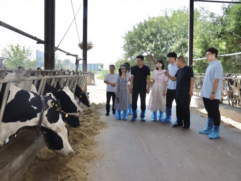 午后,实践队走进瑞龙农业和煜丰肉牛养殖场开展实地参观。瑞龙农业作为养殖龙头企业,通过“公司+农户”模式带动周边家庭养殖户共同发展,构建起良性产业生态;而煜丰养殖场则代表典型家庭农场式发展路径,虽规模较小,但规范有序,形成了“多点支撑、多元融合”的村域产业格局。通过对比两类模式,队员们进一步理解了乡村养殖业从粗放到集约的现代化发展轨迹。